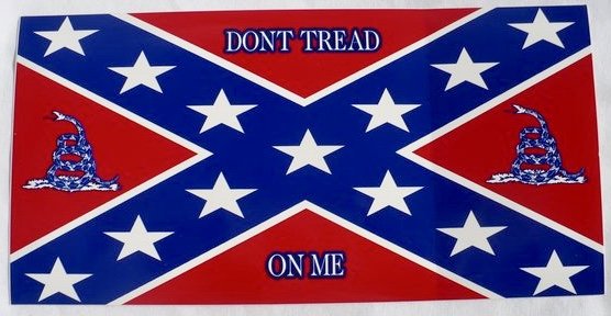 Don't tread on me with rebel flags bumper sticker.